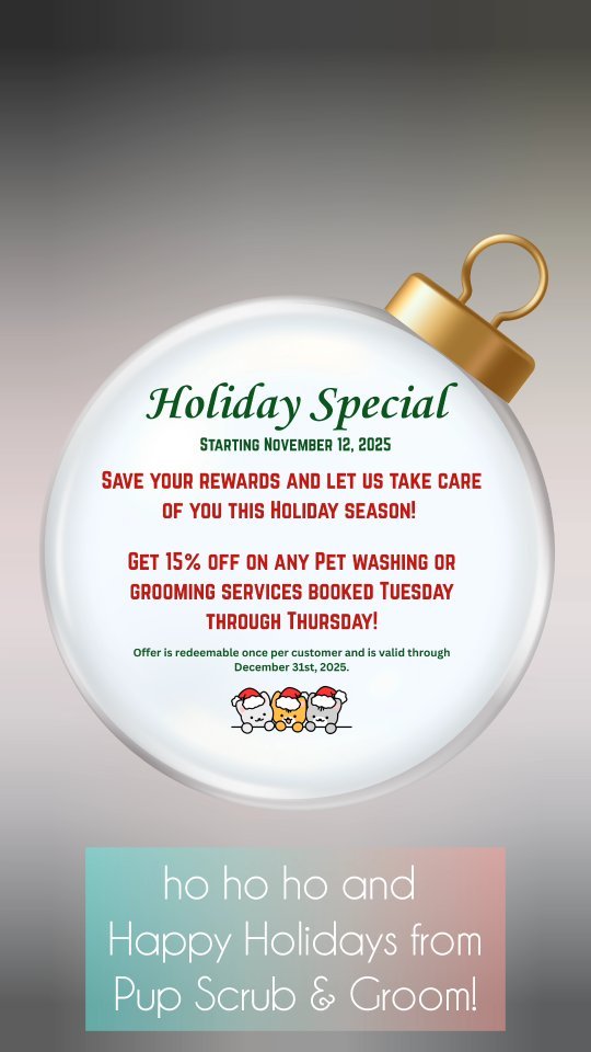 Gabyβs love for dogs and dedication to creating a unique pet care experience inspired her to bring something different to our community. At Pup Scrub & Groom, weβre more than just grooming! While we offer grooming sessions from Thursday to Saturday, weβre also a self-wash dog haven where pet parents can handle the bath themselvesβor leave it to the pros! Our services include self-wash, professional dog washes, and premium grooming.